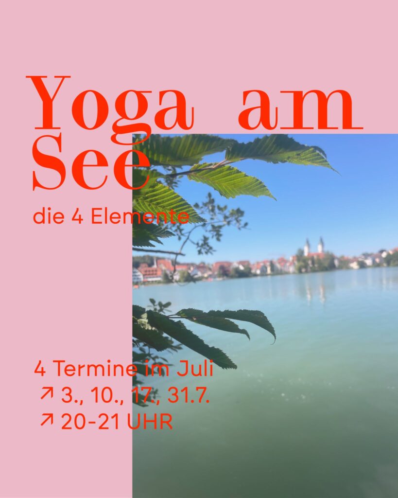 Nun endlich wieder Yoga. Dieses Mal draußen, direkt am See, aber geschützt im Bootshaus. 4 Termine zu den 4 Elementen Feuer Wasser Erde und Luft. Wir genießen den Sonnenuntergang und die Energie des Sommers und genießen ein abendliches feel yourself yoga. 4 Teemine für 48€. Meldet euch wie immer per Email an hallo@raum-wow28.de an oder tretet der WhatsApp Community Yogagruppe bei